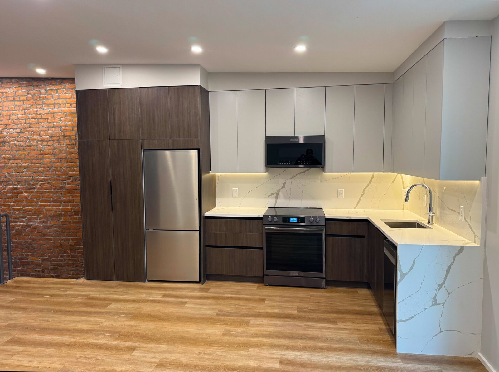 Combination of exposed brick and drywall walls, ready for paint
